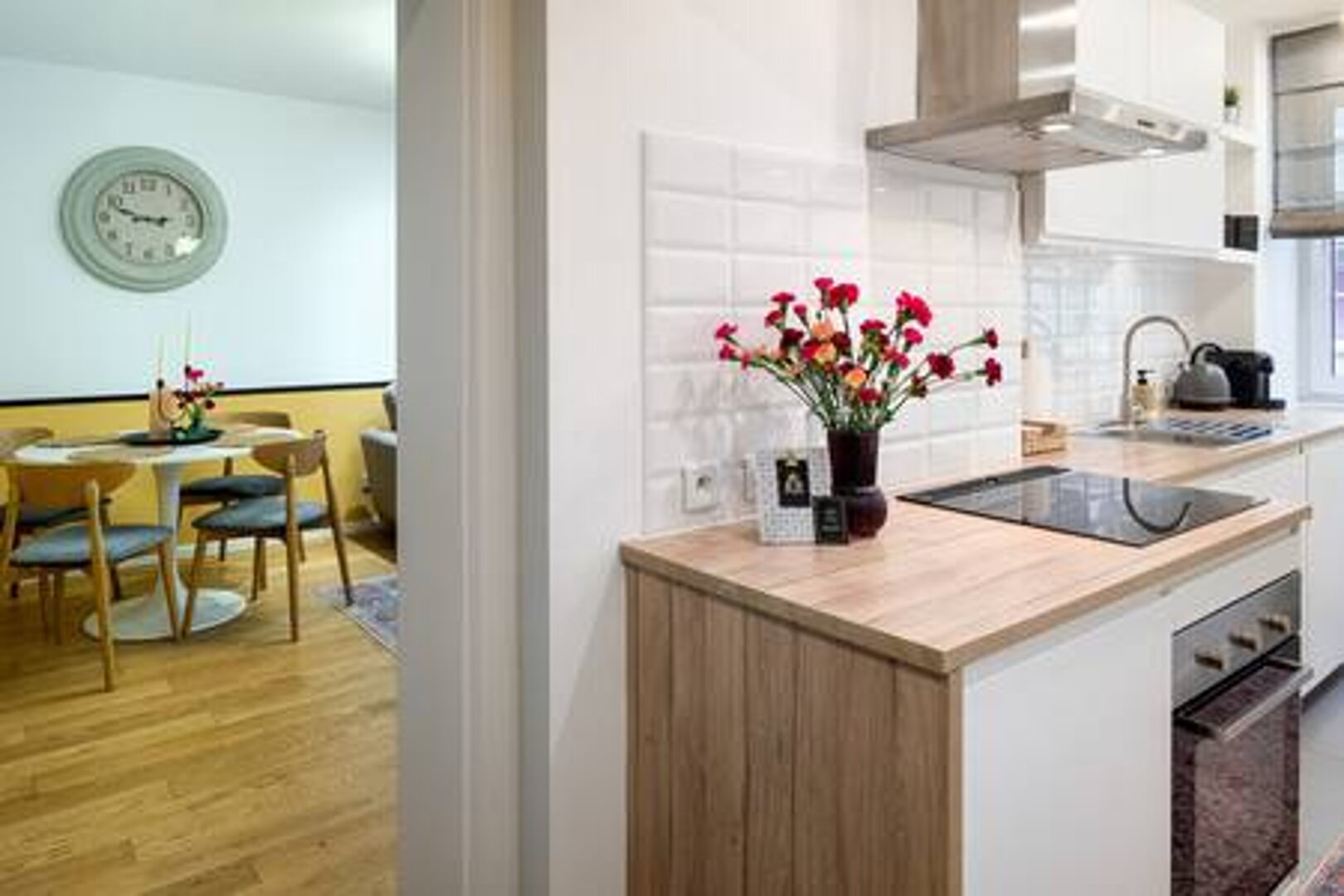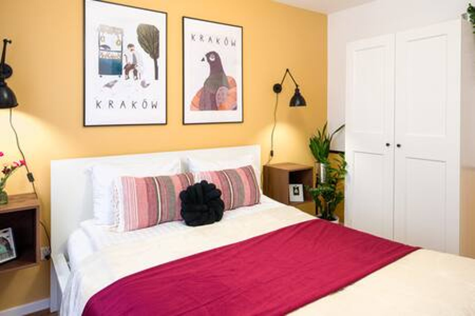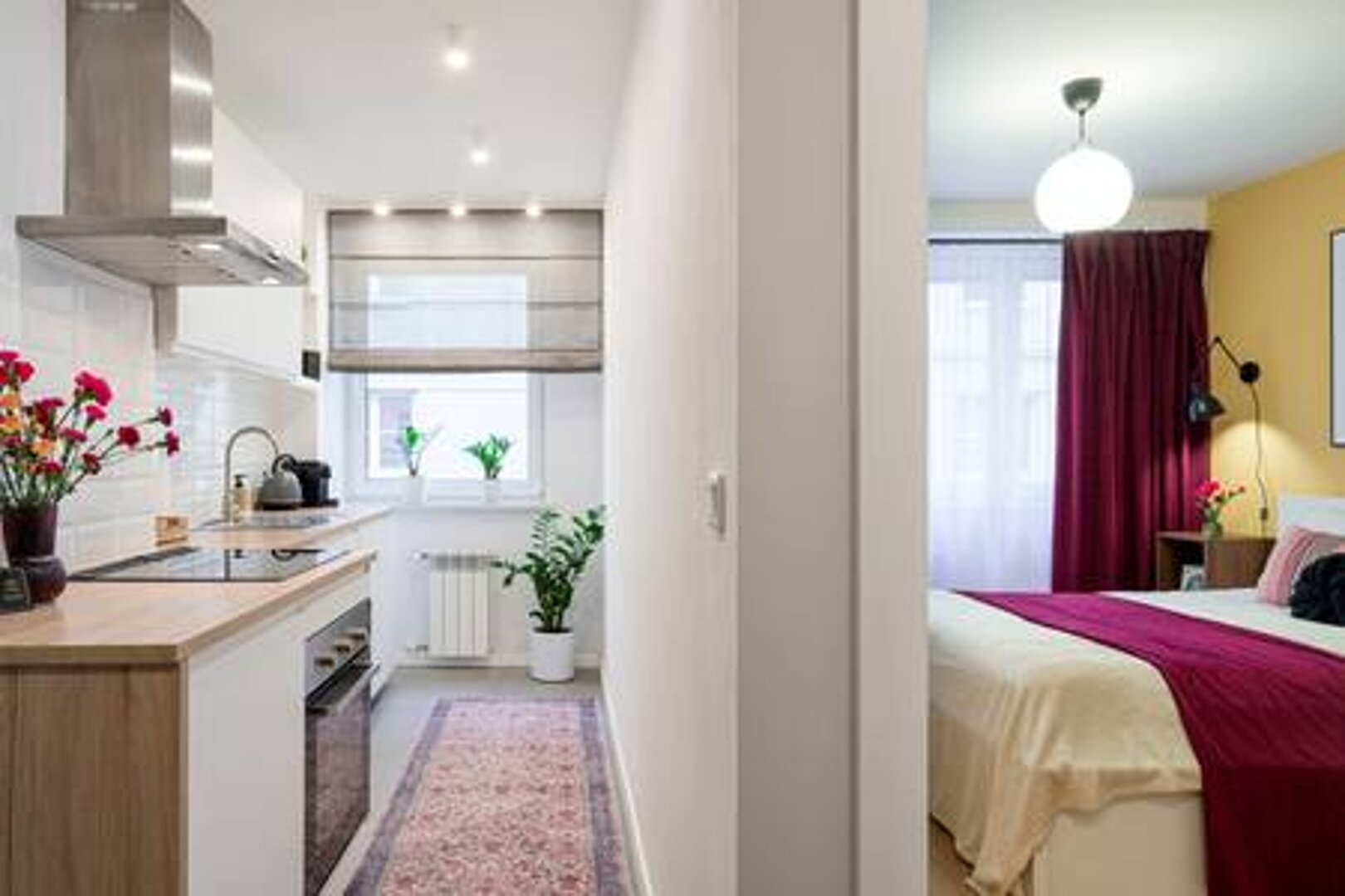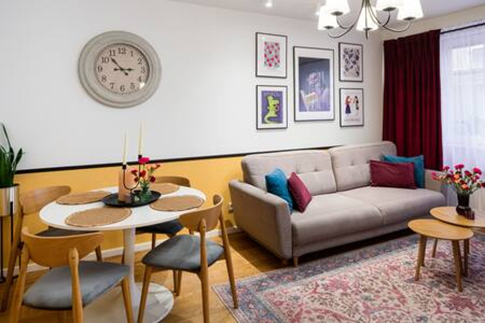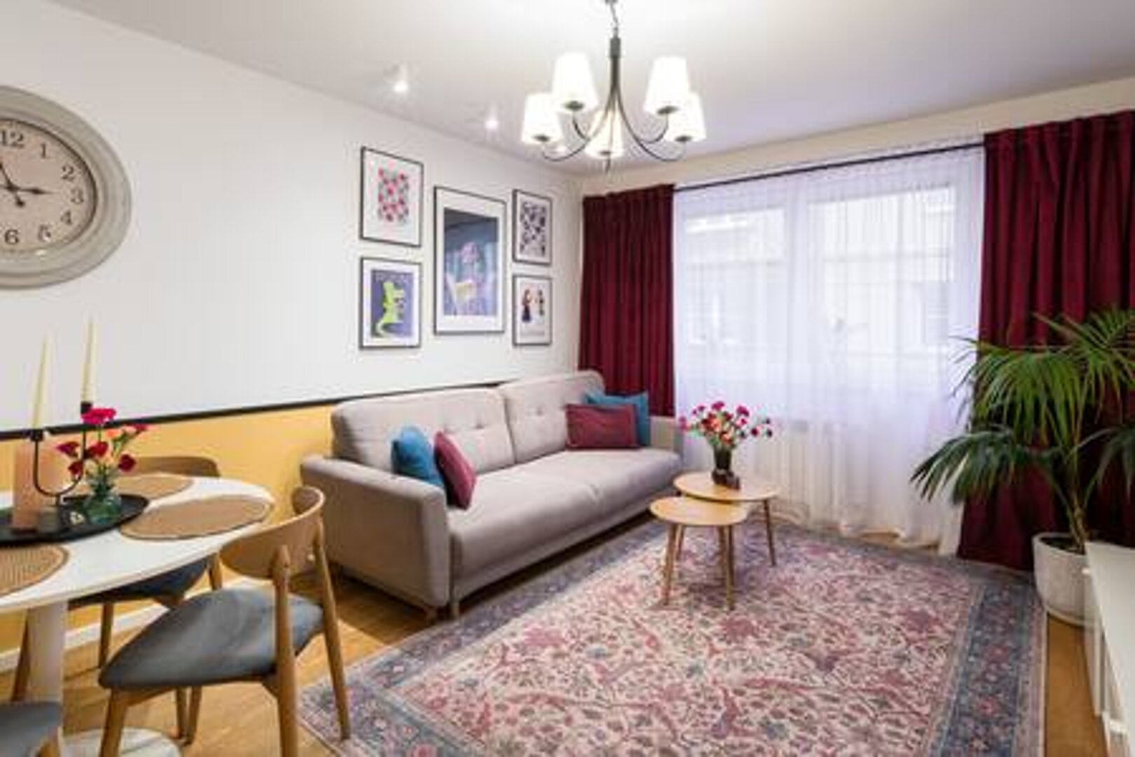 New, sunny, comfortable and fully-equipped 41 square meters apartment with 1 bedroom, kitchen and spacious living roomand bathrom . Main Square 400m Grocery 100m Tram Station 200m The apartment is located on the first floor. The flat is completely new. Equipment: - Hair dryer - Iron - Shampoo and soap - pots - cutlery - plates and glasses The apartment also has a cable television, very fast free wifi. The whole apartment is available for our guests I am available 24/7 The flat is located in the very center of town with walkig distance to the cloth hall, Wawel Castle and and all the attractions on the old town.